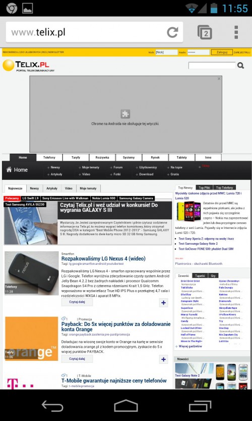 LG Nexus 4 E960 to świetny smartfon działający pod kontrolą dopracowanego systemu operacyjnego. Niewątpliwym plusem telefonów z linii Nexus jest to, że przeważnie jako pierwsze otrzymują aktualizacje Androida. Do plusów należy dorzucić dobrą jakość wykonania i kompaktowe rozmiary oraz niewielką wagę. Mi osobiście bryła Nexusa bardzo odpowiada. Trochę rozczarowuje 8-megapikselowy aparat fotograficzny, także jakość wideo. Mimo wszystko, nadal jest to jeden z atrakcyjniejszych modeli na rynku. Cena w wersji 16 GB – ok. 1800 zł.
