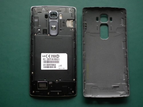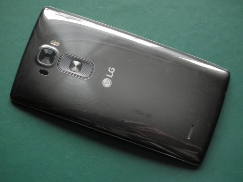 Nasi Czytelnicy są przyzwyczajeni do tego, że smartfony tej koreańskiej firmy, już od dawna nie mają przycisków, sterujących pracą smartfonu na krawędziach i nie inaczej jest w tym przypadku. Firma LG umieszcza je bowiem na tylnym panelu, tuż pod obiektywem głównego aparatu. Warto jednak podkreślić, że po przyzwyczajeniu się takie rozwiązanie okazuję się być bardzo wygodne do obsługi smartfonu. Optyka głównego aparatu ma z lewej strony laserowy autofocus, a z prawej dwie diody doświetlające LED (o żółtym i czerwonym odcieniu). W lewym dolnym rogu umieszczono otwór, przeciętnie grającego głośnika multimedialnego.