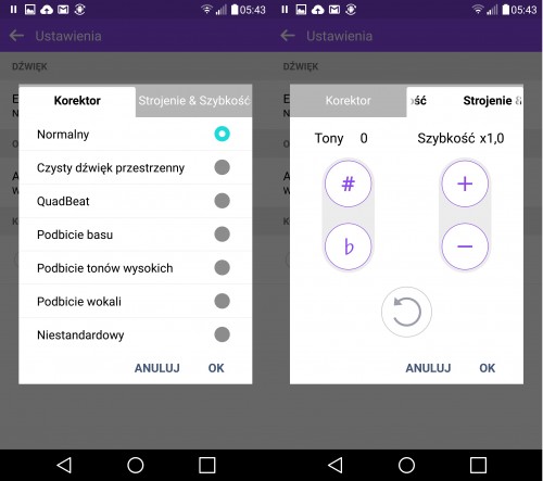 W porządnej aplikacji tego typu nie mogło zabraknąć korektora dźwięku, a odtwarzanie możemy dodatkowo przyspieszyć lub spowolnić. Istnieje także możliwość zatrzymania muzyki po określonym czasie. Dźwięk emitowany przez słuchawki stoi na bardzo wysokim poziomie, z kolei ten wydobywający się z zewnętrznego głośnika jest wyłącznie poprawny. Na pewno głośny, ale pod względem jakości wypada przeciętnie.