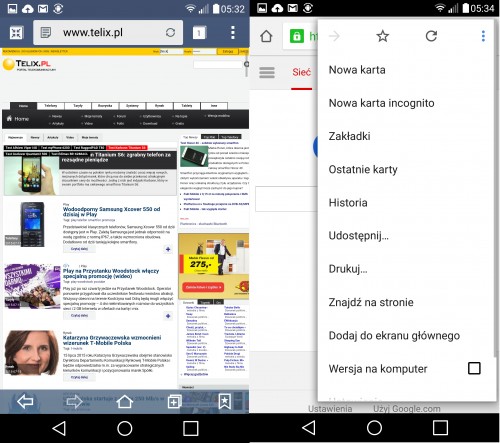W G4 nie mogło zabraknąć najnowszych modułów łączności: Wi-Fi 802.11 w standardzie a/ b/g/n/ac, LTE, Bluetooth 4.0 LE, NFC oraz nawigacji GPS z A-GPS oraz GLONASS. Przeglądanie internetu przy tak ostrym ekranie i wysokim transferze to sama przyjemność, a posłuży nam do tego przeglądarka Chrome lub Internet. Czułość anteny Wi-Fi jest bardzo dobra.