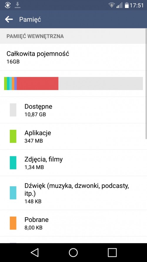 2)Pamięć: 16GB ROM (dostępna ok. 10GB) / 1,5GB RAM /