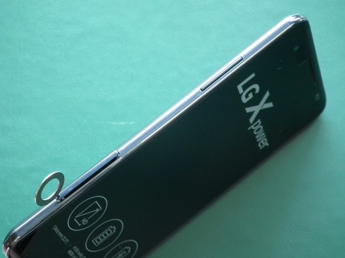 LG X power nie ma otwieranej tylnej klapki, projektanci opracowali, jedno (rozwiązanie średnio wygodne) szufladkę na obie karty. Kartę nanoSIM i microSD wkłada się do saneczek, z lewej strony obudowy. Szufladkę otwiera się kluczykiem, o którym wspomniałem wcześniej. Ewentualnie wystarczy zwykła szpilka. Powyżej znajdziemy przycisk regulacji głośności.