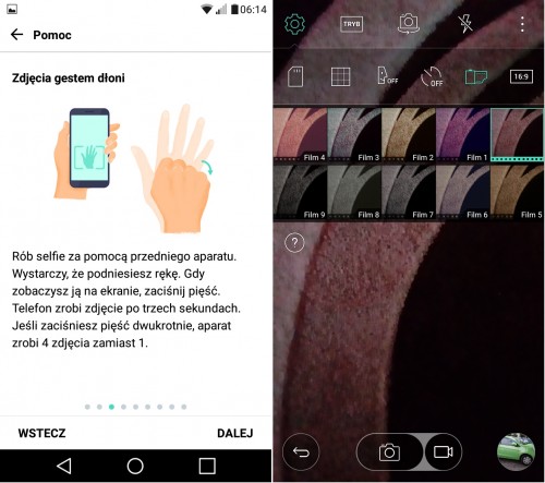 I nie mam tutaj na myśli standardowe dziś już w smartfonach z Androidem filtrowanie, HDR, zdjęcia seryjne, Tryb scenerii, HDR, zdjęcia seryjne itp, ale autorskie producenta, z szeregiem funkcji, które ułatwiają uchwycenie pięknych wspomnień i dzielenie się nimi w social mediach. Pierwsza z nich to Auto Shot (znana już z LG X cam), dzięki której przedni obiektyw automatycznie wykrywa twarze, wyzwalając migawkę w odpowiednim momencie. Druga, Film Effect, pozwala na ustawienie odpowiedniego dla nagrywanej scenerii filtra, który nadaje ujęciom wyjątkowy i oryginalny klimat. Trzecia, Quick Share, umożliwia szybkie i intuicyjne dzielenie się wykonanymi zdjęciami i snapami z przyjaciółmi. To połączenie pozwala na robienie zdjęć w bardzo dobrej jakości nawet przy mizernym oświetleniu. Zastosowany czujnik poprawnie łapie ostrość kolory oraz całkiem nieźle radzi sobie z dalekimi plenerami. Krótko mówiąc na turystycznych szlakach może nam posłużyć, jako samodzielna cyfrówka.