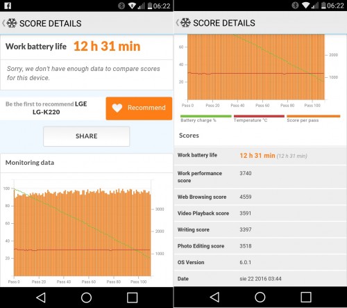 Oczywiście wiele nadal zależy od ustawień poziomu jasności ekranu oraz wykonywanych czynności, ale LG X power ma baterię lepszą nawet niż niektórzy drożsi konkurenci.