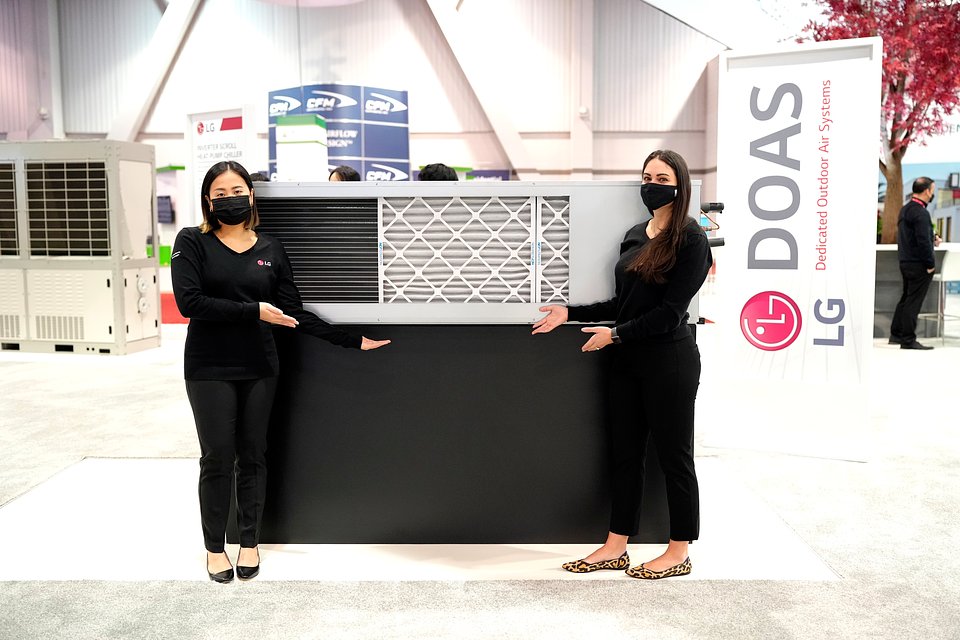 Urządzenie LG Split Compact DOAS, finalista nagrody AHR 2022 Innovation Award w kategorii wentylacji, wyposażone jest w wężownicę główną oraz wężownicę dogrzewającą na gorący gaz i całkowicie osusza, chłodzi lub ogrzewa powietrze zewnętrzne do wentylacji przestrzeni, w której przebywają ludzie, szczególnie w przypadku modernizacji z ograniczoną przestrzenią sufitową, rurową lub kanałową. Split Compact DOAS, który przeszedł na AHR 2022 do finału w kategorii uzdatniania powietrza w pomieszczeniach, ma fabrycznie zainstalowaną sekcję odzyskiwania ciepła, wbudowaną grafikę w kontrolerze DOAS i opcjonalny kontroler AC Smart® z ekranem dotykowym. Integracja elementów sterujących DOAS z systemem LG VRF zapewnia efektywne codzienne monitorowanie i sterowanie przez zarządców obiektów.