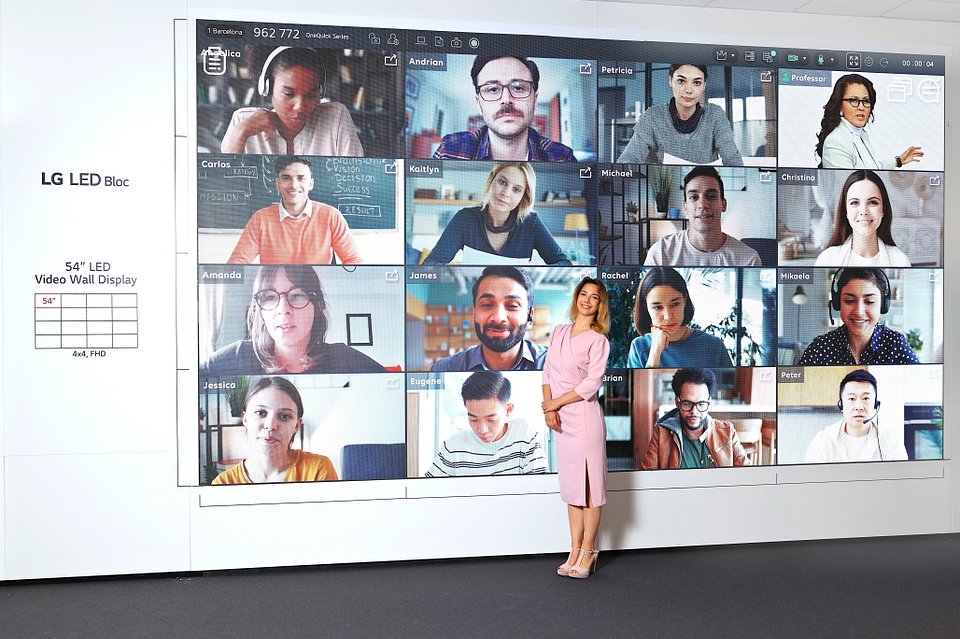 LG prezentuje również kilka innowacji sprawdzających się w dyspozytorniach, audytoriach i wirtualnych salach lekcyjnych. Urządzenia LED Fine Pitch o wysokiej rozdzielczości i bezramkowej konstrukcji pozwalają wyraźnie zobaczyć każdy szczegół, a bezramkowy 54-calowy ekran LED Bloc może być stosowany przez klientów jako łatwy do zamontowania 55-calowy wyświetlacz ścienny LCD – pasuje nawet do uchwytów istniejących modeli ścian wideo LCD.