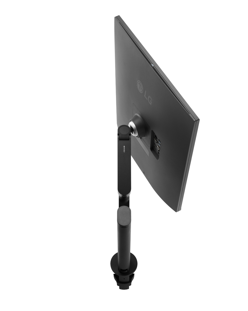 Ramię LG Ergo zostało udoskonalone w porównaniu do poprzedniej wersji. Posiada bardziej zaawansowaną funkcję przechylania, obracania i wyciągania. Może zmieniać kierunek w zakresie ±335°, czyli szerszym niż ±280°, który zapewniało poprzednie ramię Ergo Stand. Szeroki zakres pozycji umożliwia dostosowanie wysokości, kąta i głębokości monitora do pozycji najbardziej ergonomicznej dla ciała użytkownika.