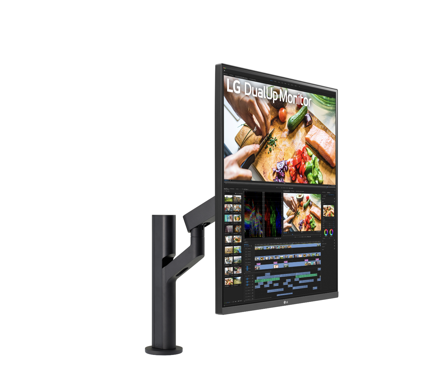 Monitory UltraWide odmieniły pracę profesjonalistów różnych specjalności, oferując horyzontalnie długi wyświetlacz – doskonale sprawdzający się w edycji arkuszy tekstowych i kalkulacyjnych. Natomiast LG DualUp – o proporcjami 16:18 – łączy dwa ustawione na sobie monitory, tworząc ekran, który zrewolucjonizuje sposób działania twórców i programistów. Podobnie jak w przeszłości zrobił to LG UltraWide.
