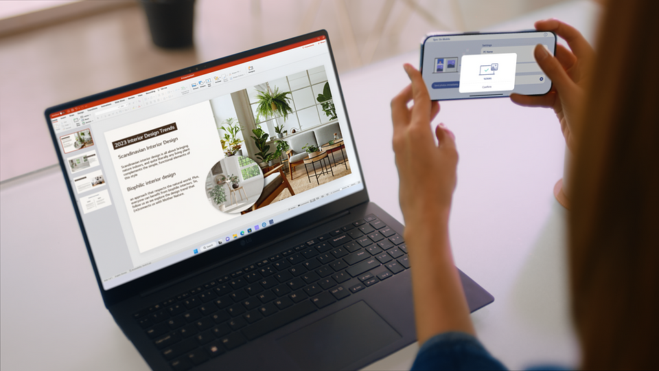 Swoją premierę miała także druga odsłona mobilnego monitora LG gram +view. Wyświetlacz pozwala podwoić powierzchnię ekranu, aby można było pracować w trybie wielozadaniowym w dowolnym miejscu. Tegoroczna ulepszona wersja przenośnego ekranu LG zyskała nowe etui, za pomocą którego w łatwy sposób można zmienić ustawienie monitora z poziomu do pionu i odwrotnie. Nowy model monitora posiada również dwa porty USB Type-C™, dzięki którym da się do niego podłączyć dwa urządzenia jednocześnie, np. smartfon i ładowarkę.