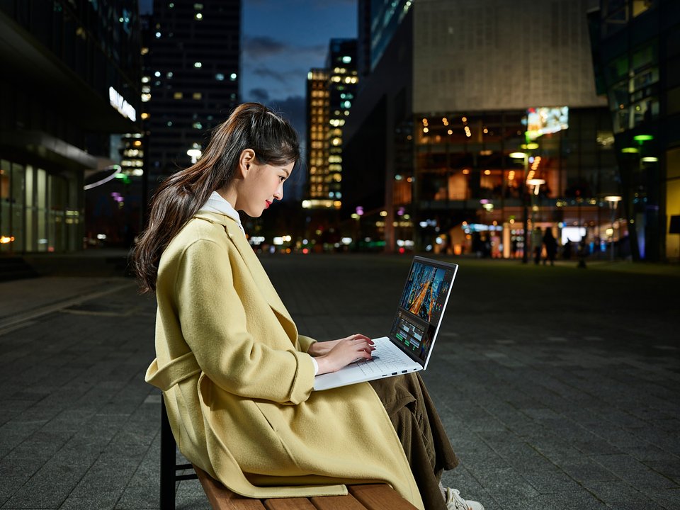 LG gram Style to nie tylko oryginalny design, ale również wydajne podzespoły. W ultrabooku wykorzystano ekran OLED o proporcjach 16:10. Dzięki temu urządzenie oferuje nieskończony kontrast oraz 100% reprodukcję kolorów DCI-P3, co przekłada się na wierne odwzorowanie barw. Zastosowanie technologii samoświecących pikseli w ekranie OLED to nie tylko obraz najwyższej jakości, co docenią profesjonaliści pracujący z fotografią lub materiałami wideo. Technologia OLED pozwala na redukcję szkodliwego niebieskiego światła emitowanego przez wyświetlacz, chroniąc w ten sposób wzrok użytkownika. Ułatwieniem dla osób, które często pracują w mocno oświetlonym lub nasłonecznionym oświetleniu jest pokrycie ekranu matową powłoką Anti-Glare Low, niwelującą odblaski.