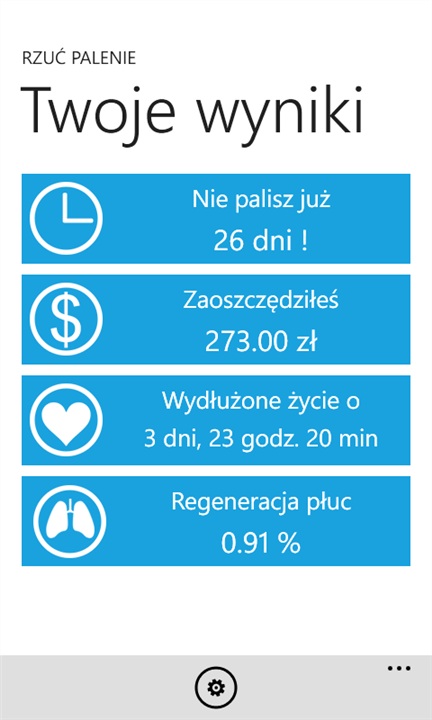 Oprócz sumy zaoszczędzonych pieniędzy dostępne są statystyki dotyczące Waszego zdrowia. Koledzy z serwisu StartupTV.pl porównali ją z QuitNow na Androida.