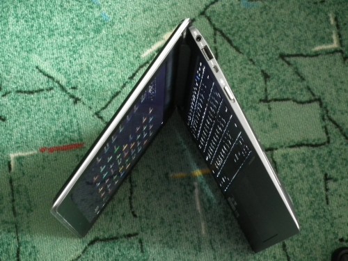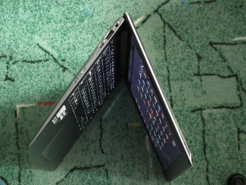Po otwarciu pokrywy Taichi to standardowy ultrabook z podświetlaną klawiaturą QWERTY i touchpadem. W tym trybie mamy dostęp do zestawu mikrofonów, kamery, wskaźnika pracy kamery (świeci podczas używania), czujnika światła, ekranu notebooka, przycisku Taichi oraz szeregu święcących wskaźników, które informują o pracy komputera. Jeżeli chodzi o Przycisk Taichi, to uruchamia on główną stronę i umożliwia przełączanie się pomiędzy następującymi trybami ekranu: Notebook Mode (Tryb Dwa ekrany), Mirror Mode (Tryb Lustro), Tablet Mode (Tryb Tablet).