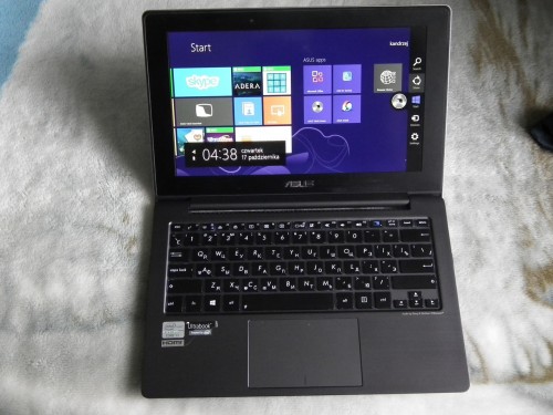 Tryb notebooka – po podniesieniu pokrywy, mamy dostęp do w pełni funkcjonalnego notebooka. Tablety wciąż są postrzegane jako urządzenia, które niespecjalnie nadają się do pracy. Ciężko napisać kilkustronnicową pracę na dotykowym ekranie. W tym trybie regulowana podświetlana klawiatura i touchpad wielodotykowy znacznie zwiększają ergonomię pracy. Opisy nawet w nocy są dobrze widoczne, a skok przycisków i ich reakcja poprawna.