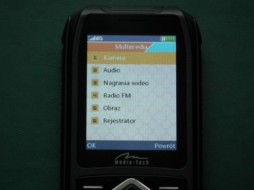 - Media: Radio FM, Odtwarzacz MP3 & MP4, zapis głosu i obrazu