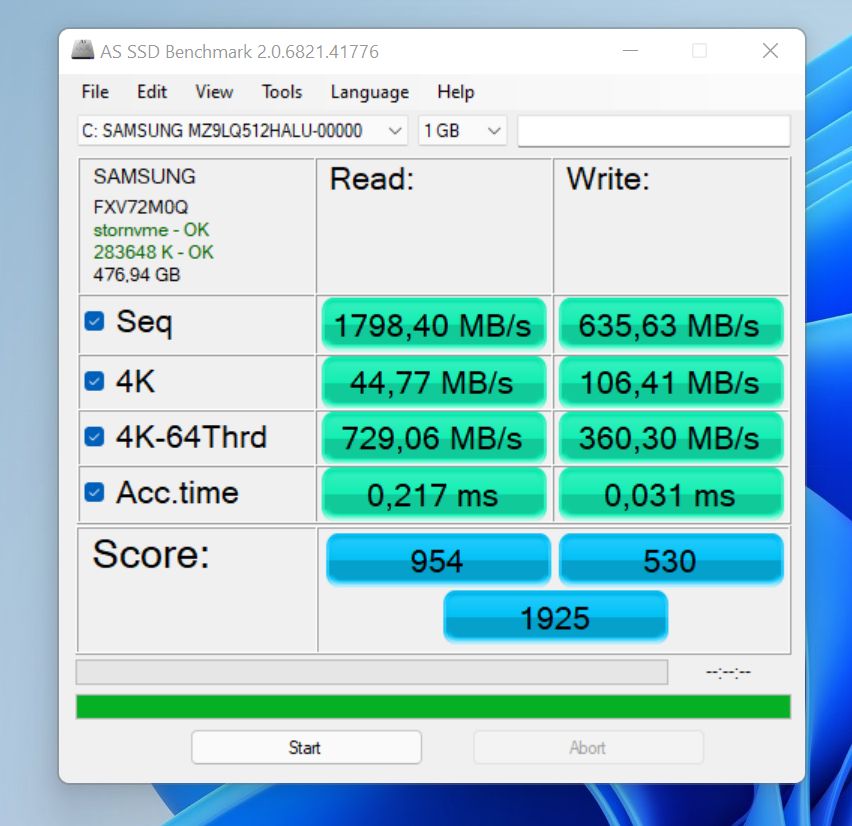 Na plus oczywiście możemy również zaliczyć szybki dysk SSD ( w moim przypadku był to dysk o pojemności 512 GB), który znacząco wpłynie na komfort naszej codziennej pracy.