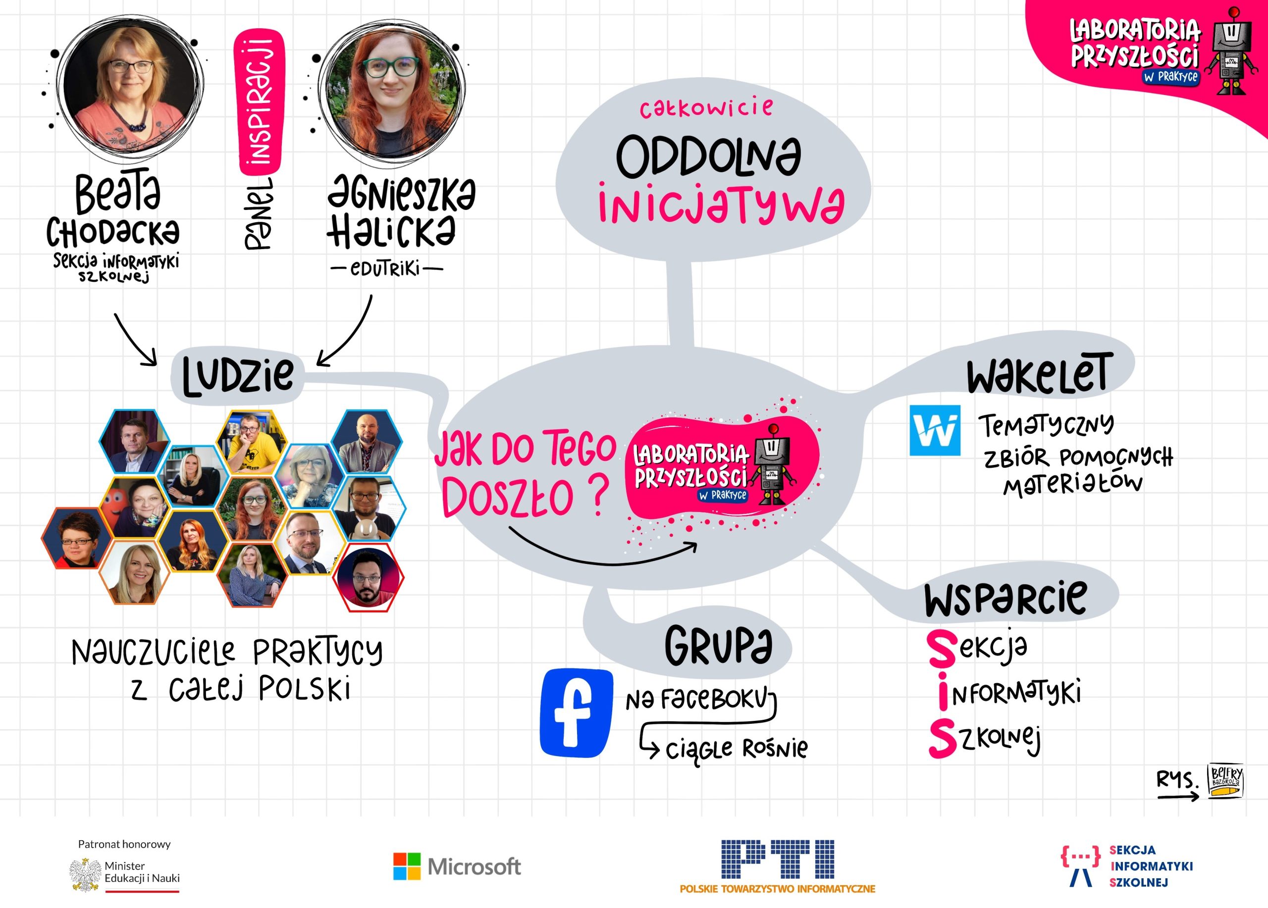 „Laboratoria Przyszłości stały się odpowiedzią na rzeczywiste zapotrzebowanie nauczycieli, którzy, otrzymawszy sprzęt zakupiony z projektu rządowego, poszukują inspiracji, wsparcia merytorycznego i metodycznego. Eksperci przez nas zgromadzeni to nauczyciele i dyrektorzy, którzy od lat włączają technologię do codziennej pracy. W grupie dzielą się doświadczeniem, odpowiadają na pytania, wskazują dobre praktyki. Razem możemy zmieniać edukację. Zmieniając edukację, zmieniamy świat” – powiedziała Beata Chodacka, Przewodnicząca Sekcji Informatyki Szkolnej przy Polskim Towarzystwie Informatycznym.