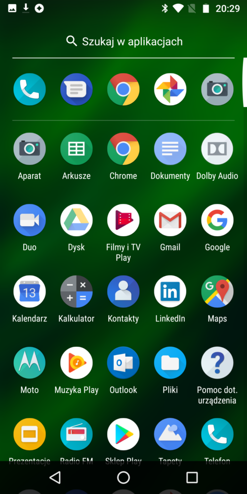 • Dodatkowe informacje: Akcelerometr, Żyroskop, Magnetometr, Czujnik światła, Czujnik zbliżenia, Czujnik Halla, Obsługa radia FM RDS, Czytnik linii papilarnych, odblokowanie za pomocą rozpoznawania twarzy, Moto Key, 3 mikrofony