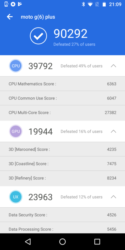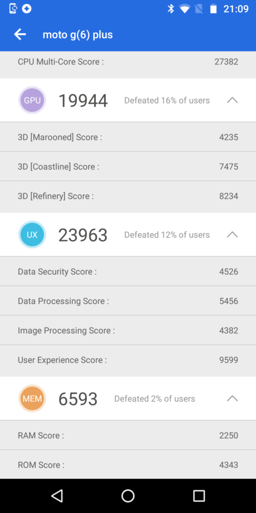 • Wyświetlacz Moto, ekran nocny, uważny ekran: 5,9″, rozdzielczość 2160 x 1080px, 409 ppi, Szkło Corning Gorilla Glass 3, 74,6%, kontrast 1500:1