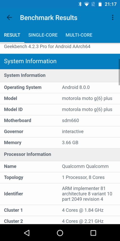 • Procesor: Qualcomm Snapdragon 630 (8 rdzeni, 2.20 GHz, 4x 2.2 GHz ARM Cortex-A53, 4x 1.8 GHz ARM Cortex-A53)