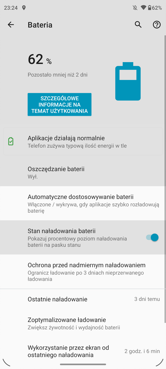 Obraz wyświetlany na tym ekranie jest świetny. I tutaj się powtórzę. Podobnie jak w edge 20 Pro wszystko jest wyraźne, kolory nasycone, kąty widzenia szerokie, a odświeżanie ekranu jedno z wyższych aktualnie na rynku. Można bez problemu pracować na nim nawet w słoneczne dni. Raczej ciężko się tutaj do czegokolwiek przyczepić. Ponadto w opcjach znajdziemy kilka możliwości konfiguracyjnych: zmiana na ciemny motyw, zmiana kolorów (nasycone, naturalne, regulacja temperatury kolorów), zmiana odświeżania (60 Hz, 144 Hz, automatyczny), personalizacja kolorów, czcionek czy ikon, podświetlenie nocne, zapobieganie migotaniu obrazu czy zmiana poziomu jasności oraz możliwość włączenia opcji „uważny ekran” (ekran jest włączony, gdy na niego patrzymy). Zatem każdy znajdzie coś dla siebie. Standardowo też mamy do dyspozycji moto gesty oraz nawigację gestami lub możliwość włączenia standardowej belki z przyciskami. Tą ostatnią, to bardzo szybko wyłączam, gdyż gesty są mega wygodne w nawigacji. Jednak to kwestia gustu i dobrze, że są obie możliwości.
