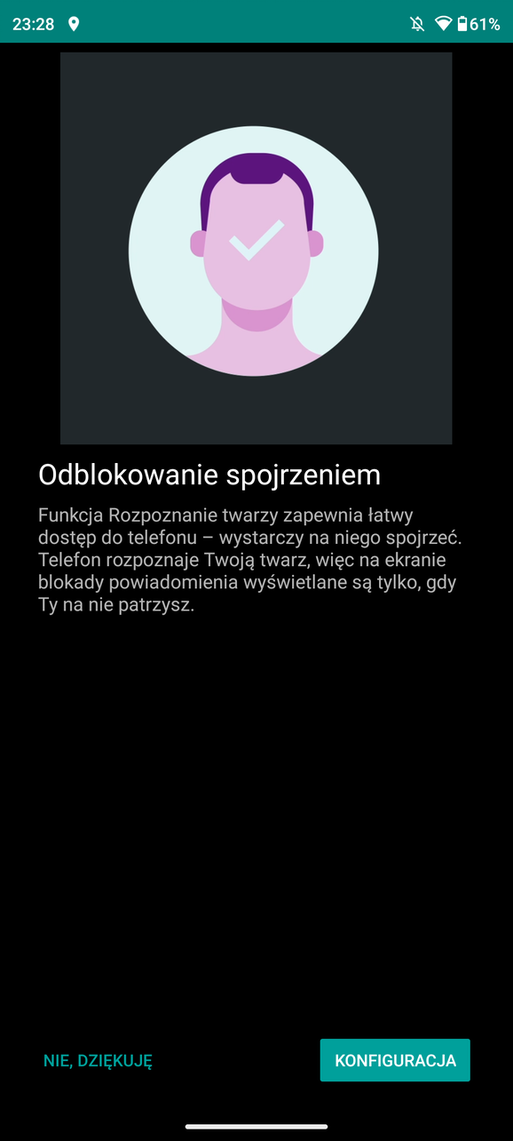 A jak wypada biometria w tym modelu? Tutaj nie mam większych uwag. Czytnik linii papilarnych umieszczony w przycisku działa szybko i bezbłędnie. Dla fanów odblokowania telefonu twarzą jest też taki mechanizm, chociaż mniej bezpieczny i może zawieść w ciemniejszych pomieszczeniach. Nie mniej jest i można go użyć.