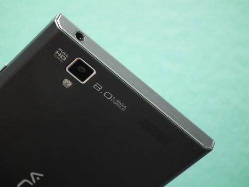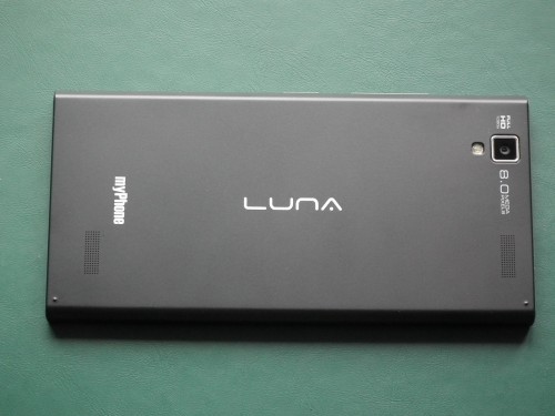 Tylna pokrywa smartfonu jest matowa i nad wyraz interesująca. Podczas testów okazało się też, że nie jest zbyt mocno podatna na zarysowania. W oczy rzucają się dwa stereofoniczne głośniki i 8-megapikselowy aparat fotograficzny z diodą LED. Warto wspomnieć, że dioda emituje bardzo intensywne światło i sprawdza się bardzo dobrze w roli latarki. Szkło kamerki zabezpiecza przed porysowaniem metalowa obwódka. Producent nie wstydzi się wyraźnie podpisać pod swoim urządzeniem i ujawnić ciekawie zaprojektowaną graficznie nazwę modelu. I słusznie, bowiem ma czym się pochwalić, a myPhone Luna powodów do wstydu mu nie przynosi. Wracając do głośników, to wspomagane przez wzmacniacz dźwięku DTS Surround marki YAMAHA, grają zaskakująco przyjemnie i głośno, a do tego nie brzęczą nawet po ustawieniu głośności na poziom maksymalny. Ponadto klapkę wyposażono w mikro wypustki, które pozwalają na wydobycie lepszej jakości dźwięku, gdy smartfon leży pleckami do blatu stołu. Nie boję się polecić go, jako przenośnego odtwarzacza audio nawet tym bardziej wymagającym użytkownikom. Po podłączeniu zestawu słuchawkowego będziemy mogli natomiast skorzystać z tunera FM i posłuchać stacji radiowych.
