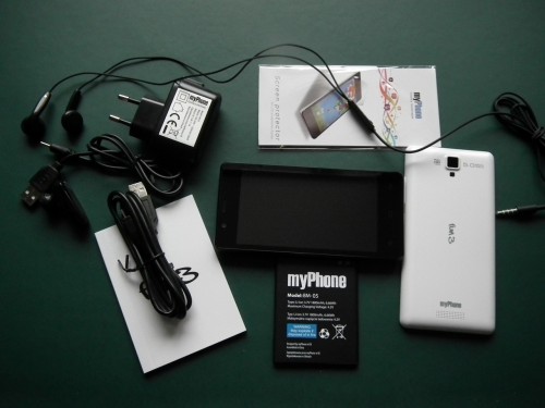 Standardowo już dla myPhone w pudełku znajdziemy telefon komórkowy myPhone FUN3, akumulator o pojemności 1800 mAh i ładowarki sieciowej (adapter + przewód USB) oraz dokumentację.