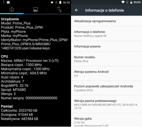 Smartfon myPhone Prime Plus korzysta z czystego systemu Android w wersji 6.0 Marshmallow. Jako że producent dołożył wszelkich starań, aby sprostać coraz wyższym wymaganiom użytkowników, wzbogacił oprogramowanie o kilka dodatkowych aplikacji. Część z nich można odinstalować, inne na stałe związane z systemem można jedynie wyłączyć.