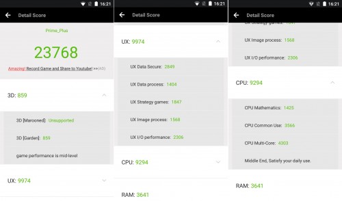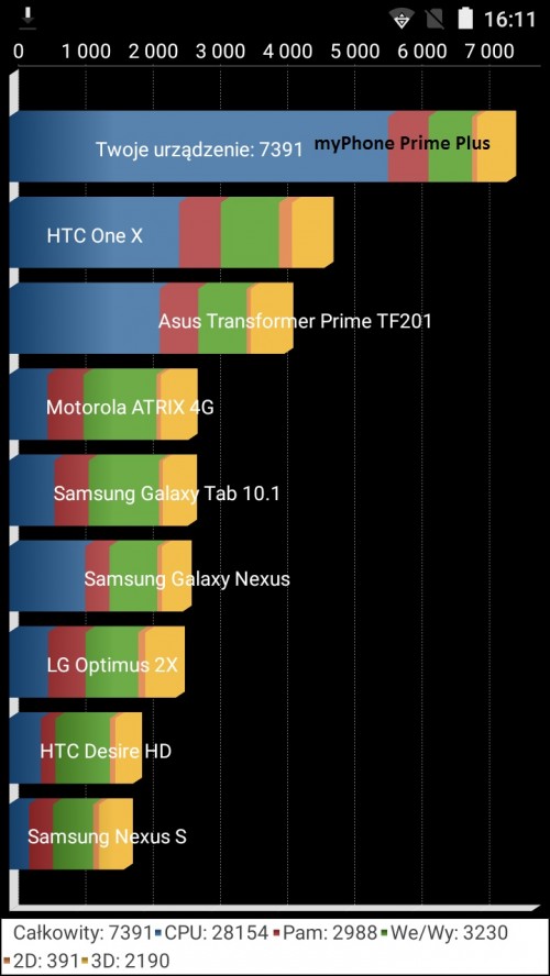 To kombinacja daje gwarancje poprawnego działania aplikacji, gier oraz Internetu. Niemniej jednak w bardziej wymagających grach można zauważyć brak płynnej animacji. Co ważne smartfon nie nagrzewał się przy tym zbyt mocno. Zestawienie to pozwoliło Prime Plus, w popularnej aplikacji benchmarkowej AnTuTu uzyskać wynik ponad 23700 punktów.