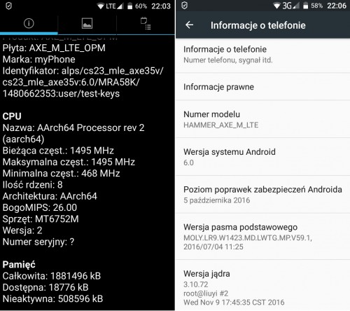 Hammer AXE M LTE do testów redakcyjnych dostarczyła firma myPhone ( www.hammeromania.pl )