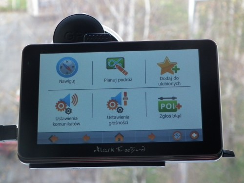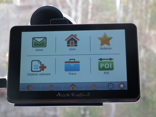 Spore przyciski pomagają w trafieniu w odpowiednie miejsce. Lark Freebird 50.8HD-DVR pracuje pod kontrolą systemu operacyjnego Microsoft Windows WINCE 6.0. System działa płynnie i wydajnie, ale trochę zbyt wolno. Sam interfejs jest intuicyjny, a czytelna grafika, pozwala na łatwą orientację w funkcjach urządzenia oraz odszukanie potrzebnej funkcji. Zastosowany w Larku 500 MHz, wspomagany przez 128 MB pamieci RAM, niestety nie jest demonem szybkości i trochę musimy poczekać nim sprzęt będzie gotowy do użycia. Dodam, że czas startu urządzenia, to blisko minuta aby móc z niego skorzystać, co należy brać pod uwagę, wybierając się w podróż z użyciem nawigacji. Także podczas używania, od czasu do czasu pojawiały się niewielkie opóźnienia w działaniu, ale na szczęście nie były zbyt irytujące.
