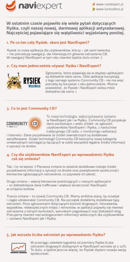Aplikacje antyradarowe cieszą się w naszym kraju niesłabnącą popularnością, bowiem pozwalają przenieść funkcje tradycyjnego CB radia do smartfona – i to za darmo. Rysiek to nowy, darmowy ostrzegacz drogowy od NaviExpert. Producent nawigacji odpowiada na pytania użytkowników i objaśnia, po co ten cały Rysiek, skoro jest NaviExpert.
