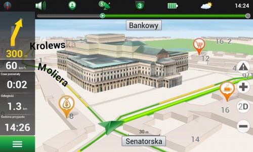 – na mapie wyświetla tylko nazwy ulic, nazw miejscowości niestety nie co mnie np. wkurza gdy sprawdzam trasę bo nie wiem przez jakie miejscowości ją wytycza.