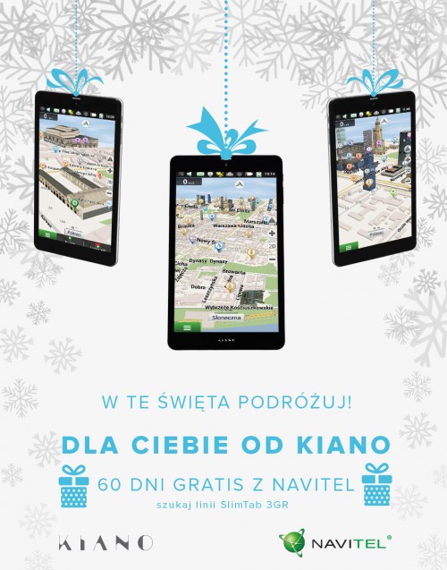 – 60 dni to wystarczająco dużo czasu, aby świadomy swoich potrzeb użytkownik zapoznał się z funkcjami aplikacji nawigacyjnej i podjął decyzję o ewentualnym przedłużeniu licencji na zasadach komercyjnych. W czasie trwania bezpłatnego okresu próbnego klienci mogą korzystać ze wszystkich możliwości programu nawigacyjnego i cieszyć się jego precyzyjnym, sprawnym działaniem. Wystarczy zakupić nowe urządzenie marki Kiano z linii SlimTab 3GR i aktywować aplikację. Siedmiocalowy tablet z funkcją nawigowania to dobry wybór w kontekście gwiazdkowego prezentu – ocenia Tobiasz Jankowski, CEO NAVITEL Poland.