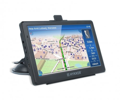 Nawigacja samochodowa Hykker myNavi 7 to najnowszy GPS marki. Szybko oblicza trasę i prowadzi przez drogę do celu. Za sprawą dużego, 7-calowego dotykowego ekranu LCD o bardzo dobrej jakości, GPS sprawdzi się zarówno w celach prywatnych – w podróży, jak i w codziennej pracy zawodowych kierowców. Co istotne w przypadku tego typu urządzeń – myNavi 7 posiada przyjazny i czytelny interfejs, dzięki czemu korzystanie z nawigacji jest proste i komfortowe.