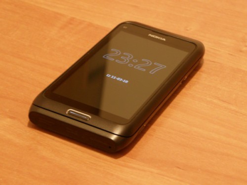 A co teraz dostajemy w E7 z nowości? Jedynie dotyk, dotkliwy dotyk bezmyślnych oszczędności na wyposażeniu topowego modelu. Co z tego, że kamera główna ma matrycę 8Mpix zdolną rejestrować filmy HD 720p, kiedy szajsowata optyka, jak z opisu w tym teście wynika, nie pozwoli na przyzwoitą jakość obrazu. Żegnajcie zdjątka makro, bardzo praktyczne choćby tylko w biznesowym pstrykaniu wizytówek lub nalepek towarowych z 'druczkiem-maczkiem’, by je utrwalić i obejrzeć na ekranie, z bliska. BRAK ROZSZERZENIA PAMIĘCI slotem na karty w modelu high-end roku 2010/2011??? Klawiatura 4-rzędowa ponownie zmusi edytującego tekst posiadacza do przełączania litery-cyfry. Gniazdeczko HDMI… owszem, fajna sprawa w wolnych chwilach, jednak ograbianie E7 z tego, co już było, sprawdzonego, najpotrzebniejszego w praktyce nie tylko biznesowej jest sromotną pomyłką. Rozdzielczość wyświetlacza oczywiście pomniejszona względem powszechnego standardu w smart-fonach konkurencji, flaki typu procek, RAM itp. – przeciętne, ale rozumiem, do wysterowania 59% pikseli względem ekranów konkurencji może wystarczyć. A róbta co chceta, konstruktory z Nokija. Na kija taka topowa nowość, okaleczona na dzień-dobry?