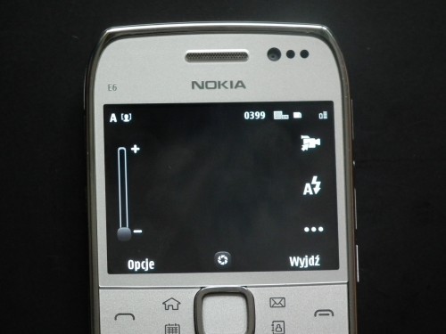 W swojej podróży służbowej biznesmen także pragnie zarejestrować miejsca swojego pobytu. Nokia E6 ma dwie kamerki – aparat pomocniczy VGA do rozmów wideo. Po jej odwróceniu znajdziemy z tyłu obiektyw aparatu cyfrowego o rozdzielczości 8 megapikeli w powalającej rozdzielczości 3264 x 2448pikseli – jak na dzisiejsze standardy wydaje się, że chwyciliśmy byka za rogi. Niestety po zrobieniu fotek spadamy na ziemię. Obiektyw kamery z podwójną diodą LED umieszczony z tyłu obudowy nie jest specjalnie chroniony przez zarysowaniem, więc warto o tym pamiętać kładąc telefon na szorstkiej powierzchni.