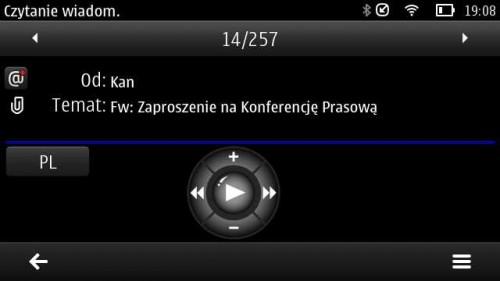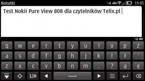 Kolejny pozytyw idzie w stronę pisania SMS’ów. Być może jest w kwesta wielkości ekranu ale pierwszy raz pisanie wiadomości tekstowych na ekranie dotykowym Nokii nie było dla mnie mordęgą. Ba! Nawet przyjemnie się pisało. Co prawda nie tak komfortowo jak na Androidzie niemniej jednak całkiem znośnie. Gorzej było ze stawianiem polskich znaków diakrytycznych. Trzeba dłużej przytrzymać wybraną przez nas literę po czym tapnąć na wersję z odpowiednim ogonkiem. Płynne przesuwane palcem z trzymanej litery na końcówkę nic nie da. Trzeba koniecznie odsunąć palec od ekranu i dotknąć go jeszcze raz. Nie jest to na pewno komfortowe rozwiązanie.