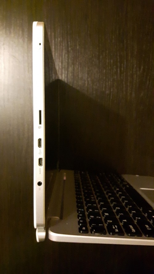 Tak po lewej stronie znudzimy gniazdo do podłączenia ładowarki sieciowej, mico-HDMI, microUSB, gniazdo na kartę microSD oraz mikrofon.