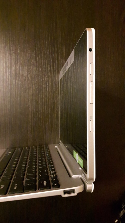 Po prawej tronie znajduje się gniazdo słuchawkowe przycisk z maleńką diodą do włączania/wybudzania, przycisk regulacji poziomu głosu oraz fizyczny przycisk Windows/start. Z prawej strony znajdziemy również dostępne w klawiaturze gniazdo USB 2.0.