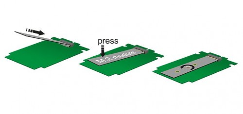 - Wspierane moduły M.2: format 22110, 2280, 2260, 2242 and 2230 z kluczem B lub B+M opartym na technologii SATA