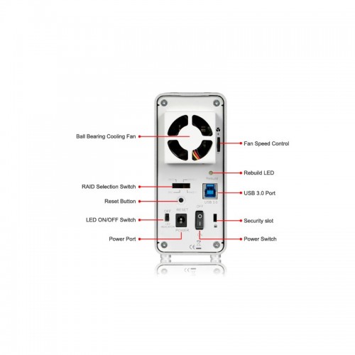Wiadomo, że najczęstszą przyczyną awarii dysków jest słabe zarządzanie ciepłem lub uszkodzenie mechaniczne. Biorąc to pod uwagę, konstrukcja MB662U3-2S R1 zbudowana jest z aluminium, które dobrze rozprowadza ciepło, jest wytrzymałe i dobrze chroni dyski. ICYRaid MB662U302S R1 dodatkowo redukuje wibracje zewnętrze, poprzez specjalne klatki, co minimalizuje ryzyko uszkodzenia dysku.
