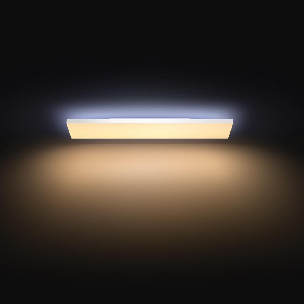 - Ulepsz oświetlenie w domu dzięki kwadratowej lampie sufitowej Philips Hue Datura z dwoma indywidualnie sterowanymi źródłami światła i bezramkową konstrukcją oraz oświetl dowolne pomieszczenie przy użyciu kwadratowego panelu sufitowego Philips Hue Tento.