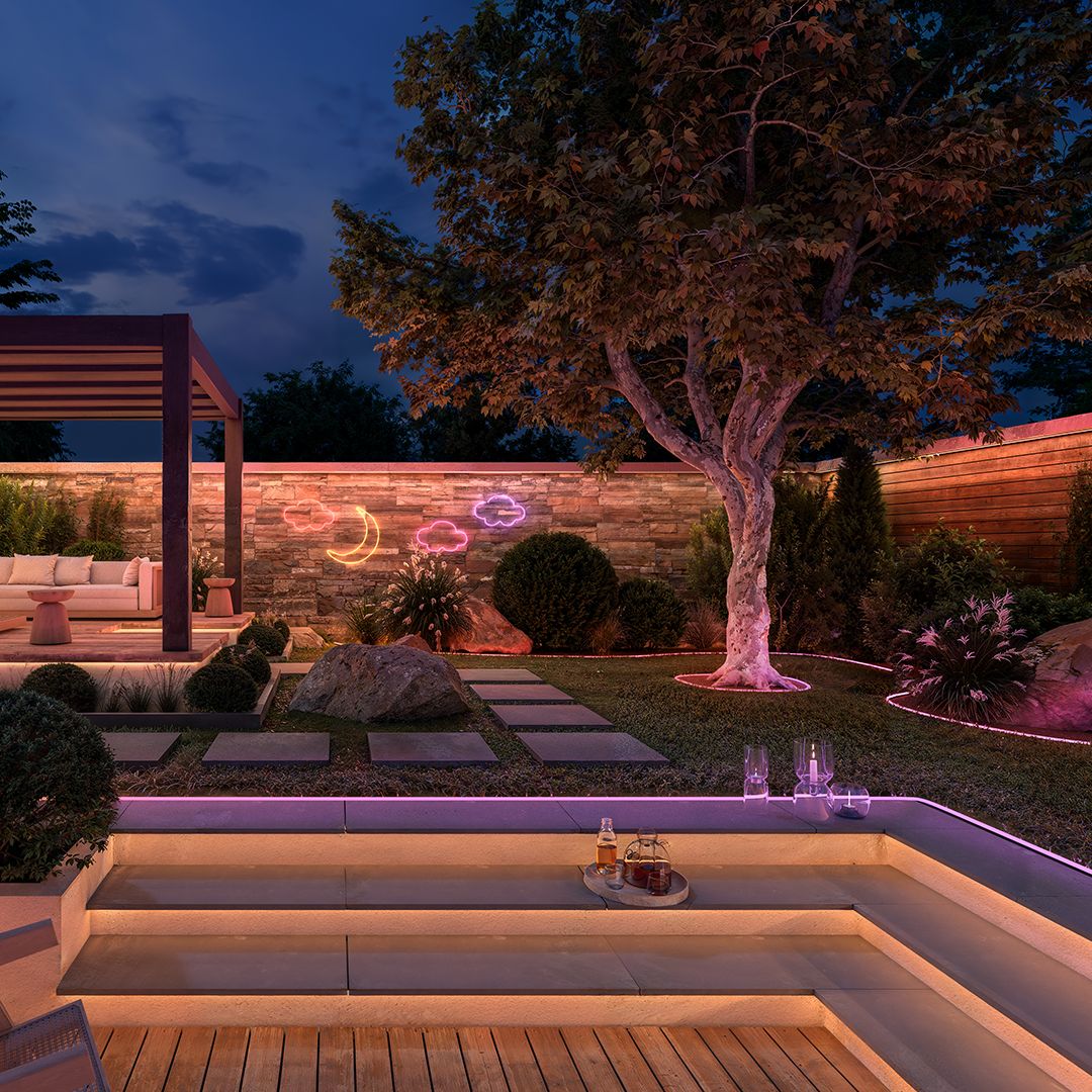 - Philips Hue Zewnętrzna taśma LED Neon: łączy kolory i zabawne efekty, aby przekształcić każdą przestrzeń zewnętrzną w olśniewający efekt.