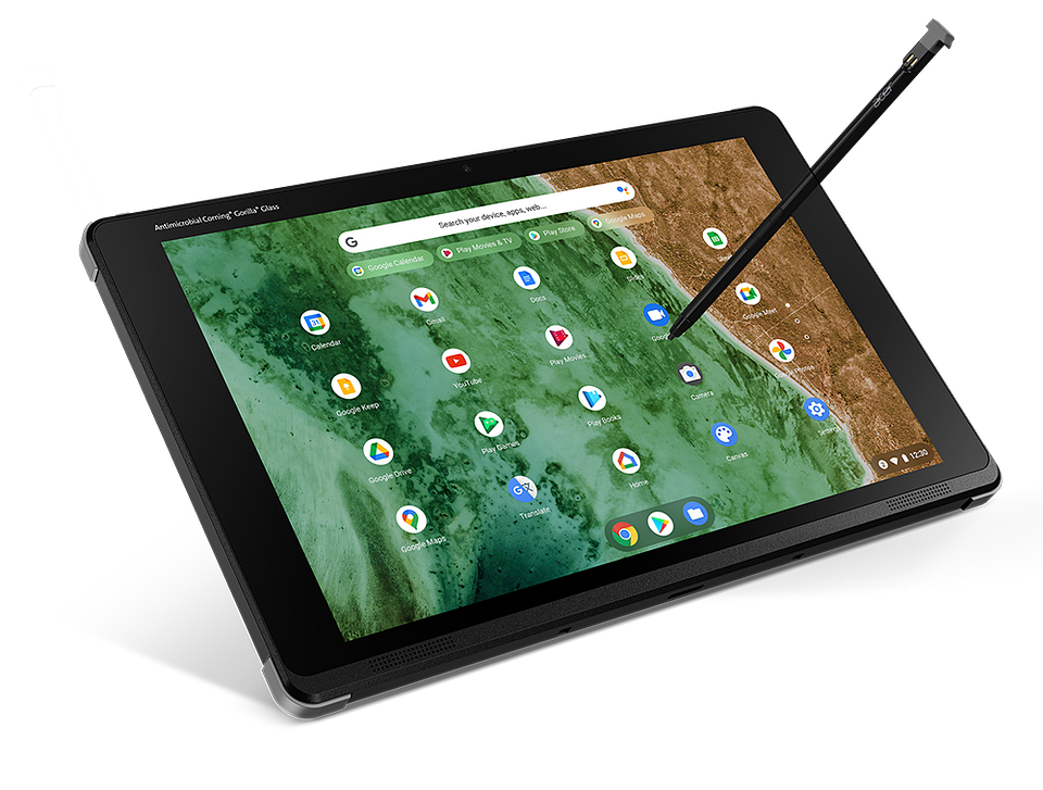 Tablet Chromebook został również zaprojektowany zgodnie z wymogami standardu MIL-STD 810H, czego przykładem jest obudowa odporna na uderzenia, narożne zabezpieczenia pochłaniające wstrząsy oraz wzmocniona konstrukcja, która chroni go przed bolesnymi konsekwencjami upadku z wysokości nawet 122 cm. Dodatkowo, ekran dotykowy został pokryty szkłem Corning® Gorilla® Glass, które ogranicza rozwój mikroorganizmów powodujących powstawanie nieprzyjemnych zapachów i przebarwień.