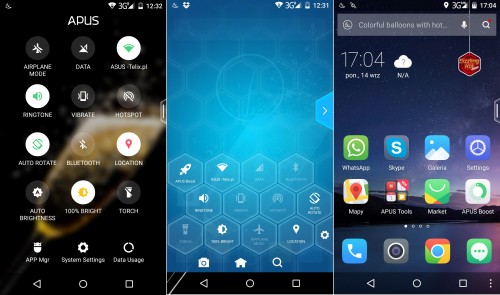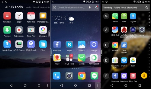 Miłym urozmaiceniem jest też APUS Launcher – minimalistyczny ekran startowy dla Androida. W APUS Launcher wszystkie skróty aplikacji wyświetlane są na głównym pulpicie. Nie trzeba przy tym obawiać się bałaganu i przewijania nawet kilkunastu paneli nawet przy kilkudziesięciu pozycjach. Te zostały bowiem automatycznie uporządkowane i pogrupowane w tematyczne foldery.