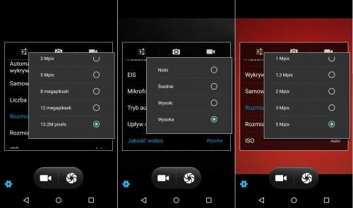 Aplikacja kamery oferuje nam sporo opcji konfiguracji i możliwości wpłynięcia, na jakość zdjęć. Wśród ustawień znajdziemy m.in. panoramę, tryb ożywionego zdjęcia, PIP, śledzenia ruch, detekcję twarzy, wykrywanie uśmiechu, a także możliwość wykonania zdjęcia poprzez wydanie komendy głosowej. Dzięki temu nie trzeba już szukać odpowiednich programów, wszystko jest już dostępne bezpośrednio ze smartfona.