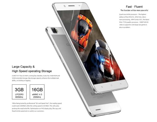 Cubot oficjalnie wprowadził do sprzedaży 5-calowego smartfona 4G/LTE z zakrzywionym szkłem 2.5D firmy JDI – model X17. Android 5.1 Lollipop i w oparciu o 64-bit procesor Quad-core.