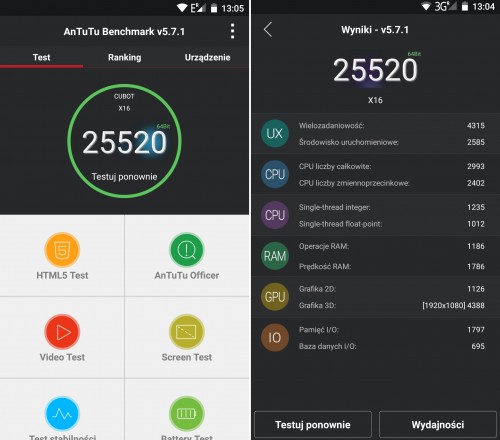 Spowolnienia zdarzają się sporadycznie i polegają raczej na pominięciu pojedynczej klatki niż jakichś poważnych uchybieniach. Miłą niespodzianką jest przeciętna temperatura pracy. Tylko przy naprawdę wymagających grach skutkowało, to odczuwalnym nagrzewaniem obudowy. Na koniec dodam, że przez kilka dni użytkowania Cubot X16 ani razu nie zdarzyło mi się żeby się zawiesił albo odmówił posłuszeństwa. Widać, że twórcy oprogramowania bardzo dobrze je zoptymalizowali.