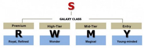 Koreański producent poinformowal, z wprowadza nowe oznaczenia smartfonów z rodziny Galaxy. Nad wszystkim góruje seria S, do której należą flagowe Samsungi z Androidem, kolejne oznaczenia: Galaxy R, Galaxy W, Galaxy M i Galaxy.